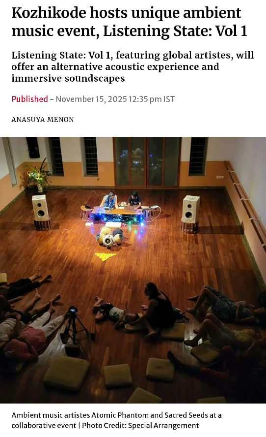 The Hindu Article “Kozhikode hosts unique ambient music event, Listening State: Vol 1”